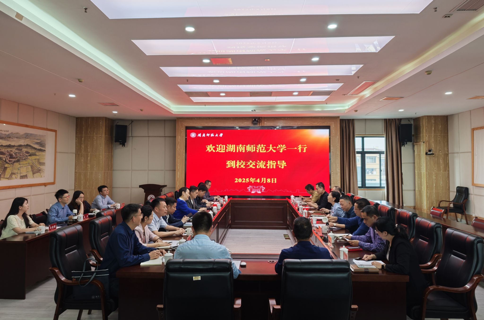 4月8日下午,湖南师范大学副校长谢资清一行来登录入口调研交流,校党委书记李顺兴会见来宾,校党委常委、副校长张宏怡出席调研座谈会。