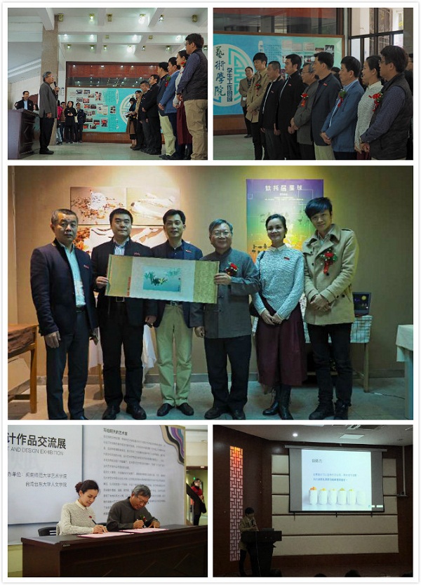 台东大学人文学院院长林永发教授在开幕式致辞中说,两岸的文化通过这样的艺术交流一定能擦出更大的火花,希望未来能够持续保持这样的模式来交往。艺术学院党委书记汤跃滨在致辞中表示,我们从中领略到两岸年轻艺术家作品的精致、清新、多样性以及充满设计感的唯美,也深深感受到作品所体现出的海峡两岸一脉相承的中华优秀文化的精彩。校党委副书记钟发亮宣布活动开幕。