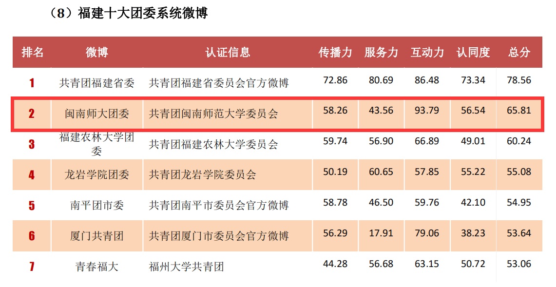 近日,人民MK体育/mksport体育·官方网站、人民网舆情监测室、新浪微博联合发布了《2017 年年度人民MK体育/mksport体育·官方网站.政务指数微博影响力报告》,登录入口团委官方微博入选“2017年福建十大团委系统微博”,这是登录入口团委官方微博连续第三次获评福建十大团委系统微博。