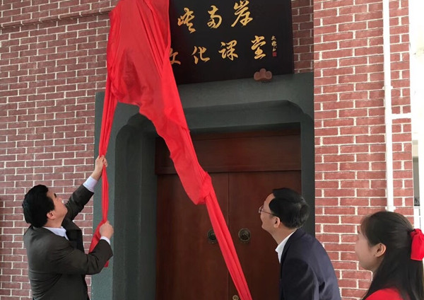 校长李顺兴与漳州市海峡两岸茶业交流协会会长刘文标为课堂揭牌