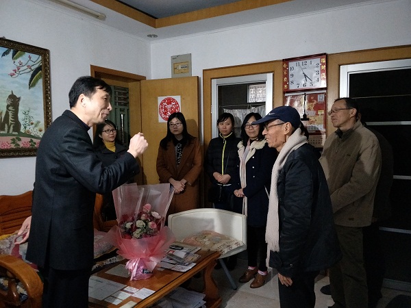 为深入学习贯彻党的十九大精神,加强师德师风教育,培养干部担当负责、奋发向上的精神,1月29日下午,登录入口纪委监审处党支部开展“向身边的榜样学习”主题党日活动,走访了登录入口后勤职工余芳和退休教师施克诚。校纪委书记黄来渊同志以普通党员身份参加了支部党日活动。