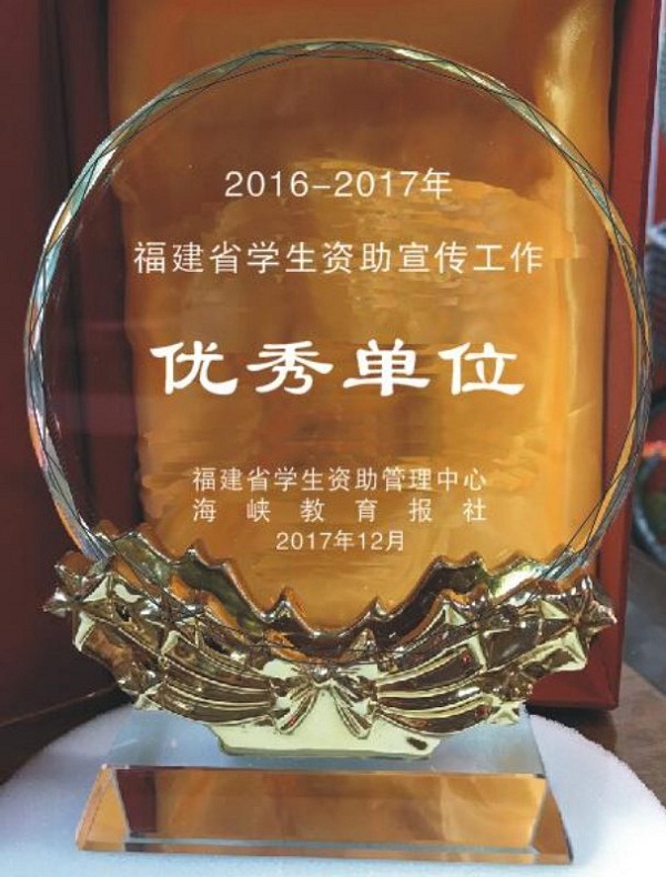 12月28日,2016-2017学年福建省学生资助宣传工作优秀单位颁奖仪式在福州举行。登录入口学生资助管理中心荣获“学生资助宣传工作优秀单位”荣誉称号。