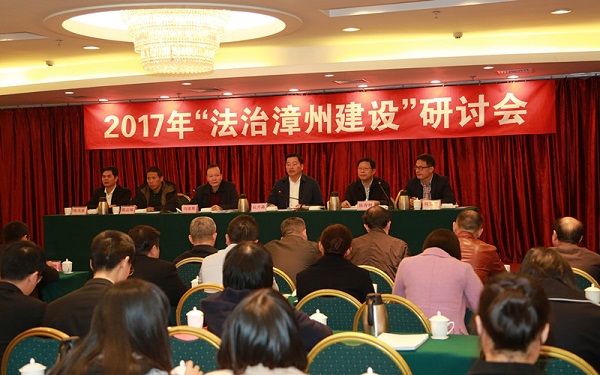 12月20日上午,由法学与公共管理学院、法治漳州研究中心承办的2017年“法治漳州”建设研讨会在漳州举行,市委副书记、政法委书记阮开森,登录入口副校长肖庆伟,漳州市政法委及公检法司、法治漳州研究中心等有关领导出席会议。
