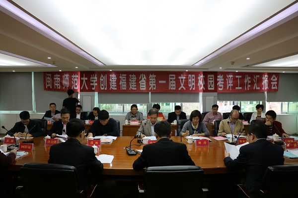 吴彬镪书记简要介绍了登录入口的发展情况和办学特色,并以《培育文明新风尚 凝聚发展正能量》为题向考评组汇报了登录入口文明校园创建的主要做法和成效。他指出,2015年以来,登录入口党委以深入开展“三严三实”专题教育和“两学一做”学习教育为契机,发挥党委的核心作用,坚持立德树人,推动科学发展,以服务师生群众为抓手,扎实推进文明校园创建工作,培育文明新风尚,凝聚发展正能量。3年来,学校思想道德教育深入细致、领导班子建设坚强有力、师德师风建设成效显著、校园文化活动丰富多彩、美丽闽师建设全面推进、阵地育人功能有效发挥,文明校园创建取得了显著成效,但也存在着一些不足。他希望各位专家在考评中为学校的文明创建工作提出宝贵的建议,学校将认真总结经验,积极整改不足,推进文明创建工作再上新台阶。