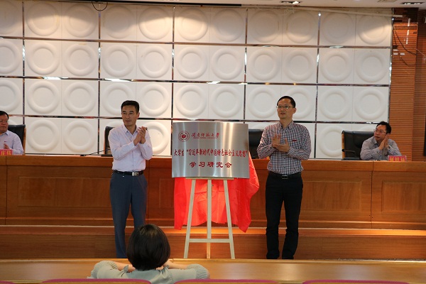 校党委书记吴彬镪和校长李顺兴为学习研究会揭牌