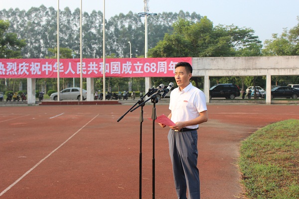 10月1日上午,登录入口在西区田径场隆重举行升旗仪式,庆祝伟大祖国68周年华诞。校党委书记林晓峰,校党委副书记吴彬镪,副校长肖庆伟、李顺兴、何绍福、蒋一婷,校纪委书记黄来渊等校领导与学校离退休干部、全体教职员工、附属小学教师和留校学生一同参加庄严的升国旗仪式。升旗仪式由吴彬镪副书记主持。
