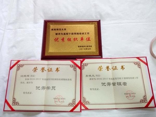 会议对在2016-2017年度中国教育干部网络学院高等教育干部网络培训中表现突出的66所高校、68位管理者和21名学员给予表彰。近年来,登录入口不断强化党员干部培训工作,在干部网络培训工作中再创佳绩,连续两年被评为“高校干部网络培训工作优秀组织单位”。组织部组织员吴俊元被评为“2016-2017年度高等学校干部网络培训工作优秀管理者”,马克思主义学院教师江晓晖在参加2016-2017年度高等学校干部网络培训中表现突出被评为“优秀学员”。