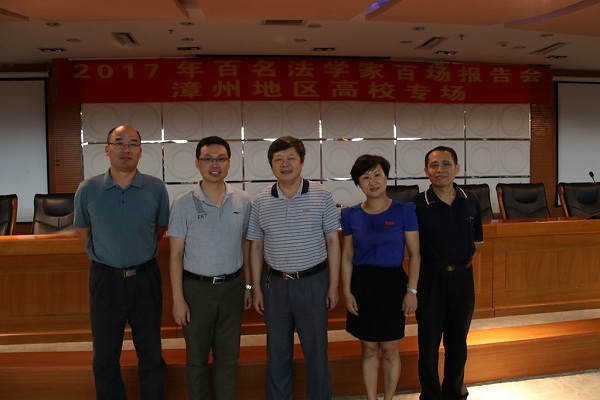 为进一步增强大学生的法治观念,全面提高大学生的法律素养,9月28日下午,2017年“百名法学家百场报告会”(漳州地区高校专场)在登录入口逸夫图书馆五楼报告厅举行。报告会特邀华侨大学法学院副教授、福建天衡律师所一级律师张照东博士为漳州高校师生作题为《法律是什么――身边的法律》的专题报告。福建省教育厅政策法规处处长陈启文、调研员林文平、副处长王飞出席报告会,MK体育/mksport体育·官方网站、漳州职业技术学院、漳州城市职业学院、漳州卫生职业学院、漳州理工职业学院五所高校400余名师生到场聆听。报告会由登录入口党委宣传部副部长方琼主持。