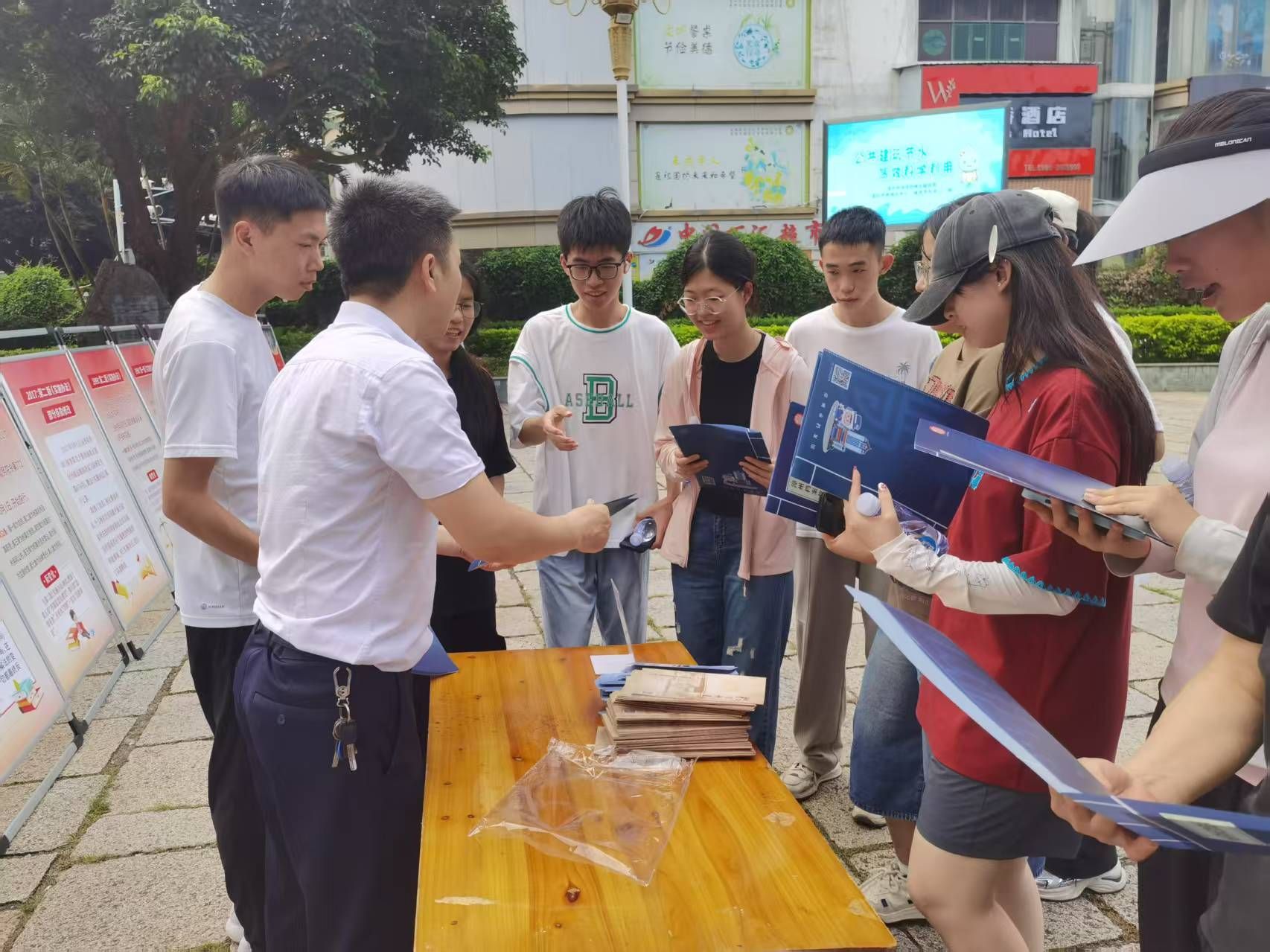 在江滨校区,漳州市档案馆、城建档案馆与芗城区档案馆联合展出了一系列珍贵的档案资料,包括《漳州市城市变迁》系列展板和芗城区档案馆馆藏精品图片系列展板。这些展板生动地展现了漳州市在不同历史时期的政治、经济、社会和文化发展脉络,以及城市在岁月变迁中的华丽转身。活动现场还安排了专业人员进行现场解说,为师生们答疑解惑,深入普及档案法知识,帮助大家更好地了解档案工作的重要意义,掌握档案的利用方法,让档案文化深度融入师生生活。