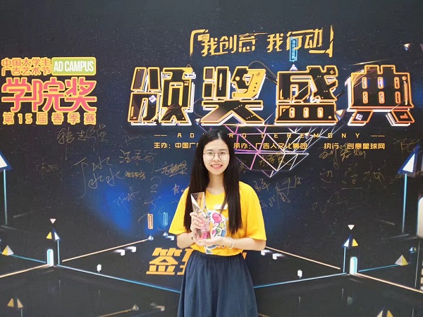 近日,第15届中国大学生广告艺术节学院奖春季赛颁奖盛典在北京梅地亚中心举行。登录入口新闻传播学院获奖团队代表赴北京参加此次颁奖典礼。由新闻传播学院教师魏巧俐指导,新闻传播学院学生邱海冰、陈惠云、郑惠婷和王书伟共同创作的参赛作品《喊麦 快克姐》获得影视广告类金奖,这是登录入口自2011年参加这一全国性广告大赛以来获得的最高奖项。此外,登录入口新闻传播学院学生还获得本届赛事优秀奖、佳作奖30多项,魏巧俐被评为本届赛事“杰出指导教师”。