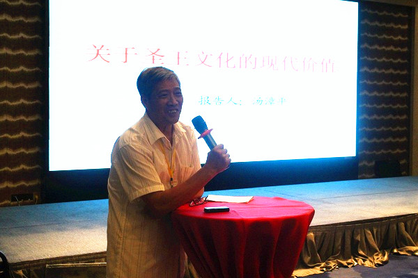 研究会荣誉顾问汤漳平教授以圣王文化为题,从其现代价值论述圣王文化。就此话题,福建省文联副主席、作协主席杨少衡从文学作品中的闽南话词汇运用及少时经历表达对闽南文化传承的切身感受;研究会荣誉指导、市人大常委会副主任李珊珊承接陈支平教授的话题,从闽南文化的国际性指出闽南文化的现代价值。研究会理事、《台海杂志》社长、主编年月则以近年来关注的闽南传统村落保护作为话题,倡言闽南文化传承和发展。