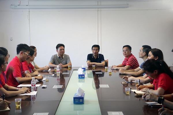 “住宿习惯吗,伙食习惯吗,在实践当中遇到些什么问题?……”刚到漳浦仁爱中华文化教育中心,吴彬镪副书记就亲切地慰问实践团成员,并参观了队员们的住宿、学习和工作环境,走访了校企合作企业——四通仁常观光油厂,走进课堂与队员们一起学习《礼在生活中的运用》。队员代表与带队教师围坐一团,积极交流实践中的体会与感受,并汇报了近期的工作情况以及接下来活动的计划。