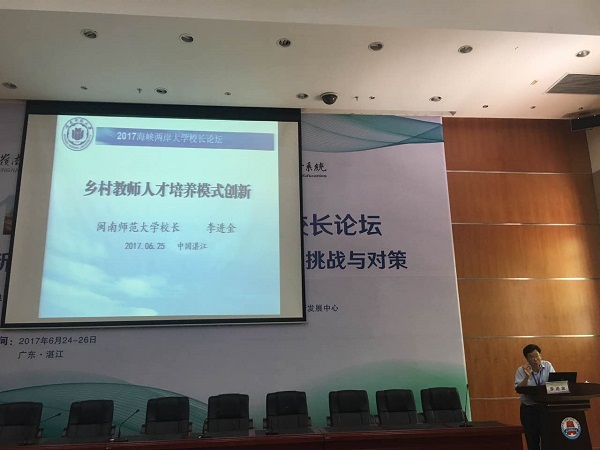 应岭南师范学院邀请,6月24-26日,校长李进金赴广东参加2017年海峡两岸师范大学校长论坛。该论坛由岭南师范学院、台湾师范教育学会、台湾教育大学系统联合主办,来自台湾师范大学、华东师范大学、华南师范大学、杭州师范大学等海峡两岸近30所师范院校的70多位大学校长、专家教授齐聚论坛,共同探讨高等教育新境界下的师范院校转型发展。