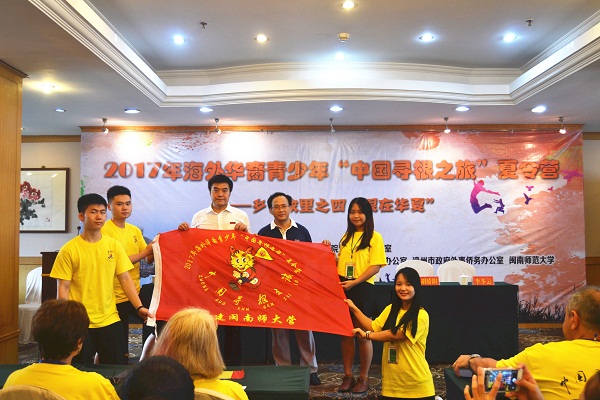 开营仪式上,王建红院长在致辞中对29名华裔青少年和教师的到来表示热烈欢迎,希望全体营员珍惜难得的机会,用心领略祖籍国的壮丽河山,提高学习中华文化、传承中华文化的自觉性,进一步增强中华民族的自信心和自豪感;来自印度尼西亚的华裔青少年顾文芳代表全体营员发言,感谢主办方尽心尽力地筹划整个活动,设计出既丰富又有意义的行程,让营员们更深刻认识当今的中国,增强了对中国历史文化的认识。她希望营员们在夏令营活动中体验中华优秀传统文化,回国后将所见所闻告诉身边的朋友。许惠勇副主任和王建红院长还一并向营员代表授旗,并宣布夏令营开营。