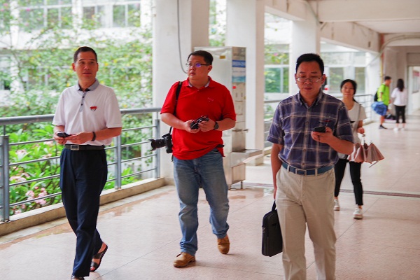 6月15日下午,副校长何绍福带领信息与网络中心工作人员前往校内各区域检查大学英语四六级考试视频巡考工作和听力考试准备工作。