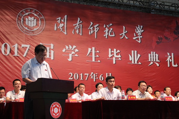 6月16日上午,登录入口2017届学生毕业典礼在球类馆隆重举行,5000多名毕业生欢聚一堂,与师长同窗依依惜别。校党委书记林晓峰,校长李进金,校党委副书记吴彬镪,副校长肖庆伟、李顺兴、何绍福、蒋一婷,校纪委书记黄来渊出席典礼,学校各机关教辅单位主要负责人,各院(系)党政领导及毕业班辅导员参加典礼。毕业典礼由吴彬镪副书记主持。