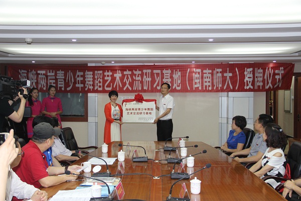 授牌仪式上,福建省舞蹈协会副主席、秘书长缪丽容与登录入口副校长李顺兴共同为“海峡两岸青少年舞蹈艺术交流研习基地(MK体育/mksport体育·官方网站)”授牌。