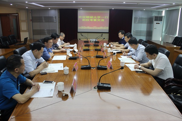 5月8日上午,聊城大学校长蔡先金、副校长胡海泉一行到访登录入口。校党委书记林晓峰、校长李进金、副校长肖庆伟会见来访嘉宾并进行参观座谈。学校办公室、研究生处、人事处、发展规划处等单位负责人陪同交流。