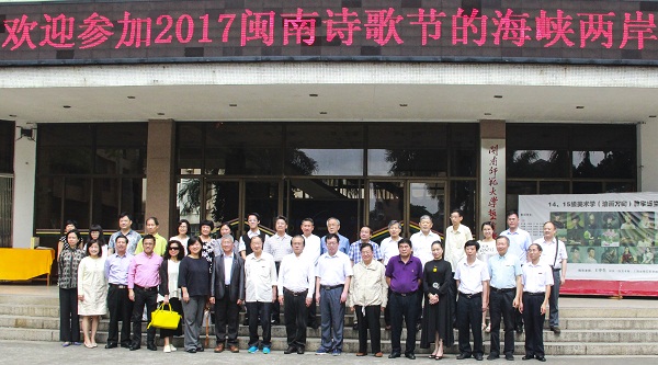 5月13日上午,2017闽南诗歌节——“诗歌与戏剧”大型文化交流活动在登录入口开幕。来自国内外近30名诗人、学者、文学评论家和剧评家欢聚一堂,围绕诗歌与戏剧、文学与艺术进行深入研讨与交流,与登录入口学子及漳州市民分享戏剧、琴艺、茶艺、书画等传统艺能延展活动的心得。福建省文联党组成员、副主席陈毅达、登录入口副校长肖庆伟、台湾明道大学副校长施慧敏、世界华文微型小说研究会副会长王勇、马来西亚作家朵拉、中国社会科学院文学研究所《文学评论》副主编曾镇南、台湾资深剧评家王墨林、台湾剧团团长金甲生,以及萧萧、白灵、罗文玲、戴潍娜等两岸著名诗人、剧评家、艺术家们出席开幕式。