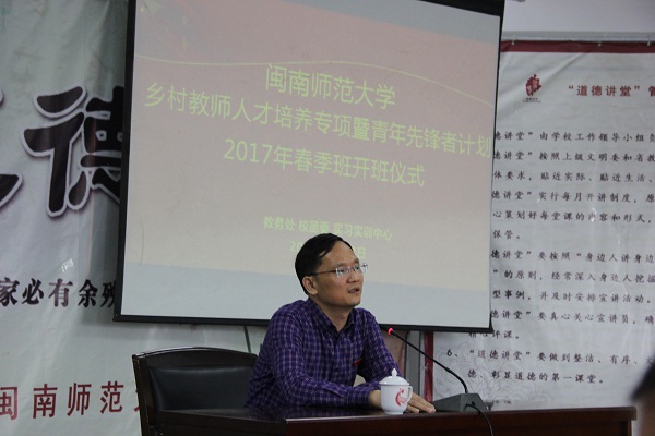 据悉,乡村教师培养专项暨青年先锋者计划2017年春季班是由登录入口教务处、校团委、教师教育实习实训中心负责实施,来自各相关院(系)的166名2014级学生自愿报名参加。培训班根据不同专业划分为五个班级,旨在重点培养、以点带面,形成示范效应,对一批思想上积极进取、政治觉悟高的“青年先锋者”进行系统的理想信念、核心价值观教育和社会责任感培养,鼓励他们响应党的号召,服务农村,扎根基层,为乡村教师储备青年人才,为国家教育事业建功立业。