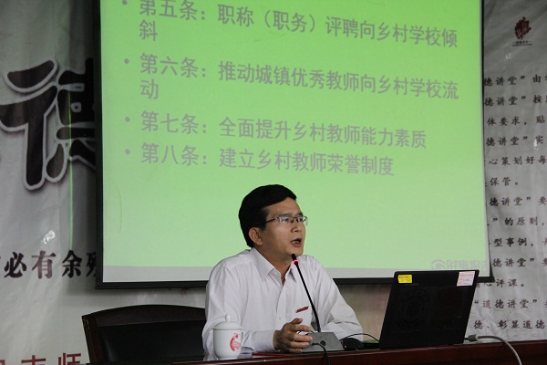 开班仪式上,李顺兴副校长还为本次培训班总班主任和各班班主任、副主任颁发了聘书。总班主任方江振还对班级具体情况,培训内容及要求作了具体说明。开班仪式结束后,培训班还邀请教育科学学院党委书记朱志明教授为全体学员作了题为的《社会主义核心价值观引领乡村教师健康成长》的专题报告。报告中,朱志明教授从“以社会主义核心价值观引领乡村教师成长的重大意义”、“准确把握社会主义核心价值观的科学内涵”、“乡村教师如何践行社会主义核心价值观”三个方面对社会主义核心价值观和乡村教师成长作了详细阐释,生动的讲解、精辟的论断和翔实的事例使学员们深受启发。