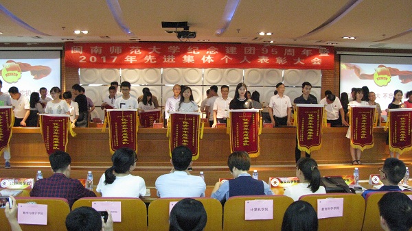 李顺兴副校长代表学校宣读了先进集体和先进个人的表彰决定。大会对42名国家奖学金获得者、700名国家励志奖学金获得者、46个校“先进班集体”、500名校“优秀学生干部”、440名校“三好生标兵”、1230名校“三好生”、2425名单项奖获得者、4139名校奖学金获得者、10个校“十佳团支部”、14个“校青年志愿服务示范基地”、20支“校优秀青年志愿服务队”、73名“校青年志愿者标兵”、274名“校优秀青年志愿者”、35名“校青年志愿者之星”、19名“优秀网络文明志愿者”、863名“校优秀共青团员”、447名“校优秀共青团干部”、41名 “校青年突击手”、51支“校青年突击队”、48个 “五四红旗团支部”、5个“五四红旗团委”、10名 “青年五四奖章”获得者及1个省“五四红旗团支部标兵”、1名省十佳团干进行了表彰,对获得荣誉的集体和个人颁发了荣誉奖牌、锦旗和证书。