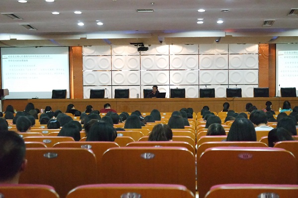 李进金校长首先从社会主义核心价值观与中华优秀传统文化的关系讲起,表明中华文化是中华五千年文明至今生生不息的基础,是中华民族屹立于世界民族之林的保障。他以秦朝“焚书坑儒”为例,阐明了“抛弃优秀传统文化就会受到历史的惩罚”的历史规律,希望大学生能以史为鉴,牢牢抓住中华文化的精髓,弘扬以团结统一、爱好和平、勤劳勇敢、自强不息为内核的民族精神,实现以仁爱、民本、诚信、正义、和谐为特色的中华文化的时代价值。因此,培育和弘扬社会主义核心价值观必须传承中华优秀传统文化。