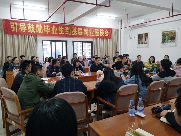 3月16日下午,登录入口召开引导鼓励毕业生到基层就业座谈会。校长李进金、党委副书记吴彬镪出席会议,登录入口毕业生代表、毕业班辅导员代表出席座谈会。座谈会由招生就业处处长徐志怀主持。