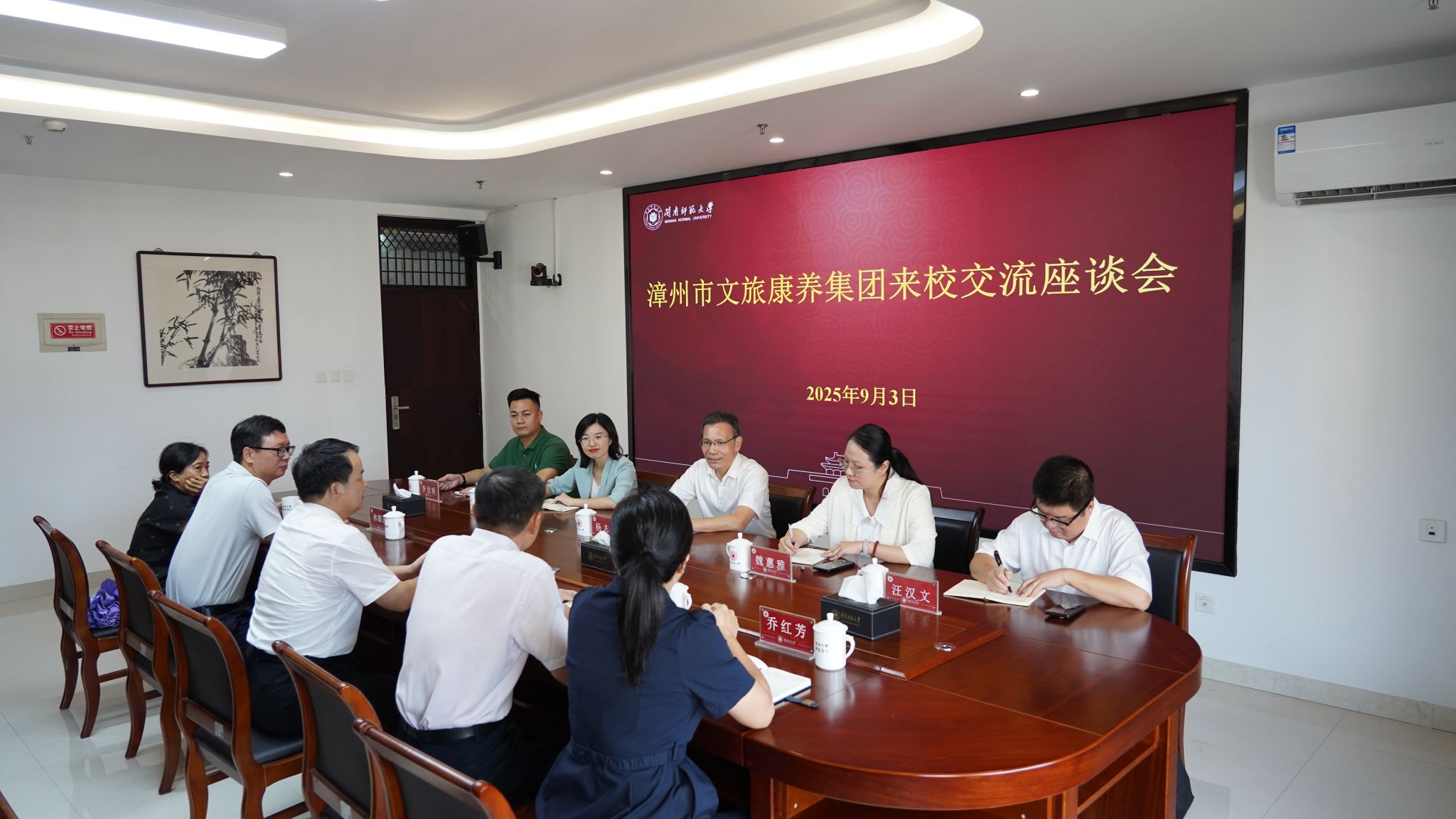 9月3日,漳州市文旅康养集团党委书记、董事长杨志滨一行来登录入口交流考察。双方在科技信息楼1507会议室召开座谈会,校党委副书记、校长张龙海,党委常委、副校长林耀进出席。
