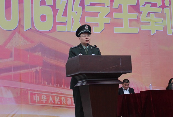 校党委副书记吴彬镪发表了热情洋溢的讲话。他向圆满完成军训任务的全体2016级学生表示祝贺,对承担训练工作的90多名教官表达衷心的感谢和崇高的敬意。他充分肯定了此次军训的成果,指出大学生军训是进行爱国主义教育,加强国防后备力量建设的时代要求,是推动学校“立德树人”育人工作有效举措。他希望学生们将军训严格规范、甘洒汗水的精神和勇气长期保持,延续到今后的学习生活中去。他要求学生们明确历史使命,坚定爱国信念,激发振兴中华的自信心和责任感。积极投身国家发展事业,为国家富强和民族复兴努力奋斗;积极弘扬长征精神,“不忘初心”,“砺志笃行”,不断超越自我,走好新时期的长征路;积极修身养德,把当代青年的崭新形象树起来,争当文明使者;积极投身志愿服务,共同推动文明校园建设。