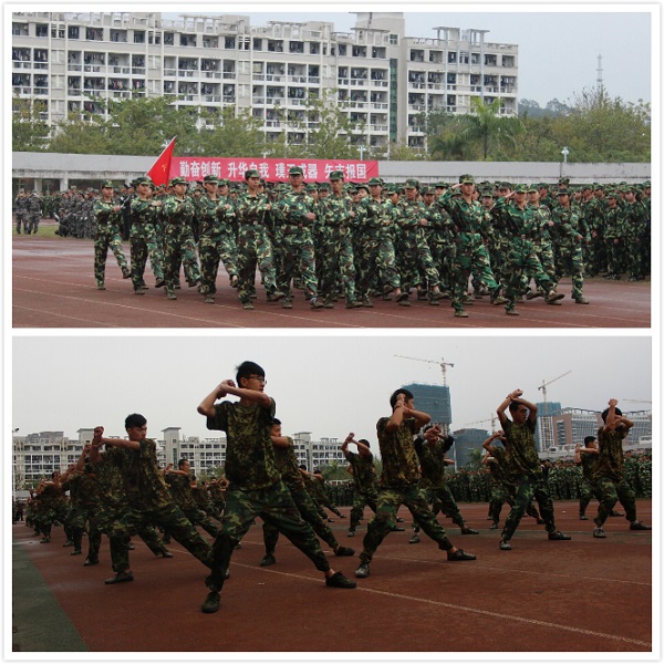 在雄壮嘹亮的国歌声中,军训成果汇报展示正式开始。来自全校15个院系的参训方队依次接受检阅,同学们激情满怀、斗志昂扬、动作规范,展示出了朝气蓬勃的精神面貌和心系国防的雄心壮志。格斗操表演动作整齐划一、刚劲有力,更是赢得了在场观众一片喝彩。