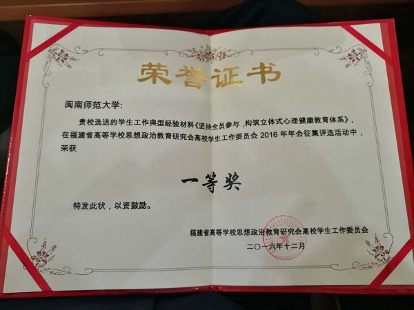 12月2日,福建省高等学校思想政治教育研究会高校学生工作委员会2016年年会在厦门大学召开,登录入口学生处处长林致远代表学校参加会议。会上公布了2016年全省学生工作典型经验评选结果,登录入口申报的《坚持全员参与,构筑立体式心理健康教育体系》在评选中荣获一等奖。