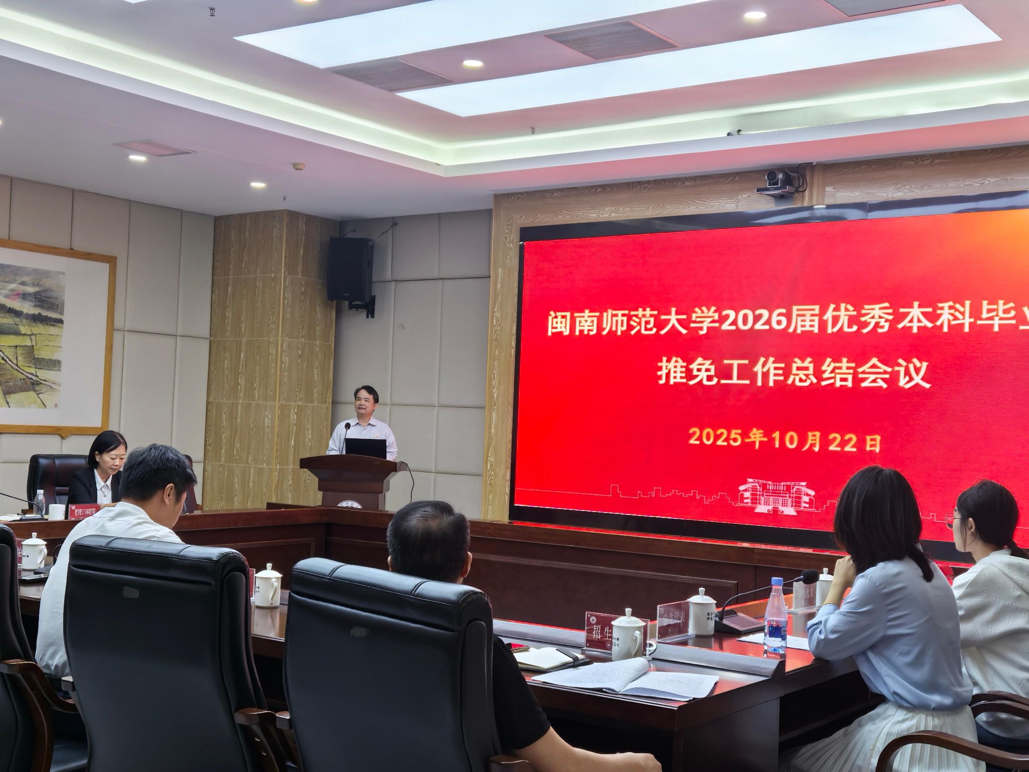 张龙海作总结讲话。他指出,推免工作是检验登录入口本科教学质量、衡量人才培养水平的重要指标之一,今年的优异成绩是全校师生共同努力的成果,是学校深化教育教学改革的集中体现。他要求,各单位要坚持育人为本,强化价值引领,将“为党育人、为国育才”贯穿推免工作全过程;要完善工作机制,提升选拔效能,持续优化推免生遴选指标体系与工作流程;要深化教学改革,夯实培养基础,以推免工作推动专业结构优化,深化课程体系、教学内容与教学方法创新,全面提升学生综合素质与核心竞争力;要加强全程指导,优化服务保障,从低年级开始强化学业与生涯发展引导,帮助学生明确目标、激发潜能;要注重跟踪关怀,拓展育人成果,持续关注推免生成长,发挥其传帮带作用。