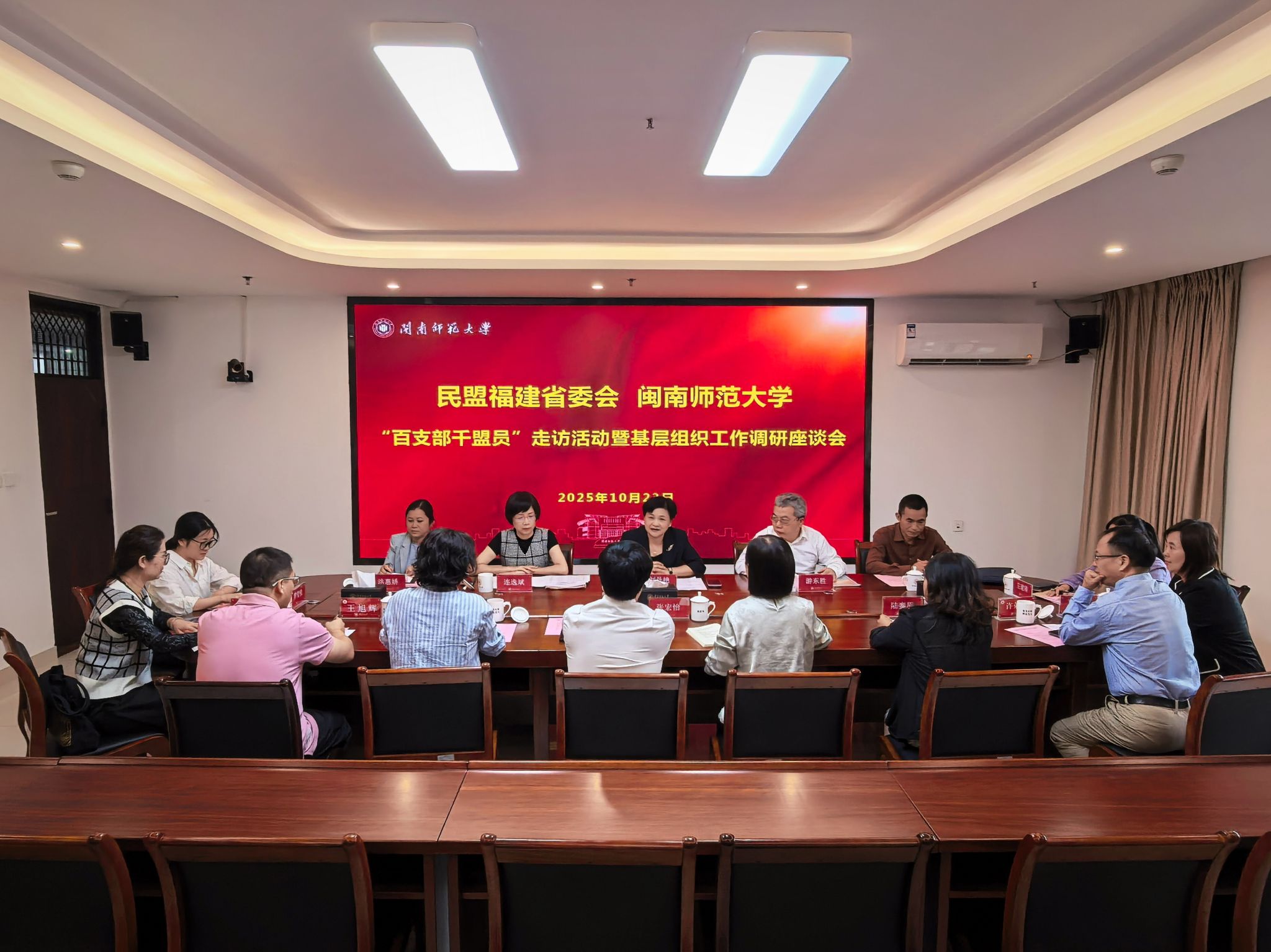 10月23日下午,民盟福建省委会专职副主委兼秘书长刘丹艳一行来登录入口开展“百支部千盟员”走访活动暨基层组织工作调研。双方在科技信息楼1507会议室座谈交流,校党委副书记林致远,党委常委、副校长张宏怡出席。