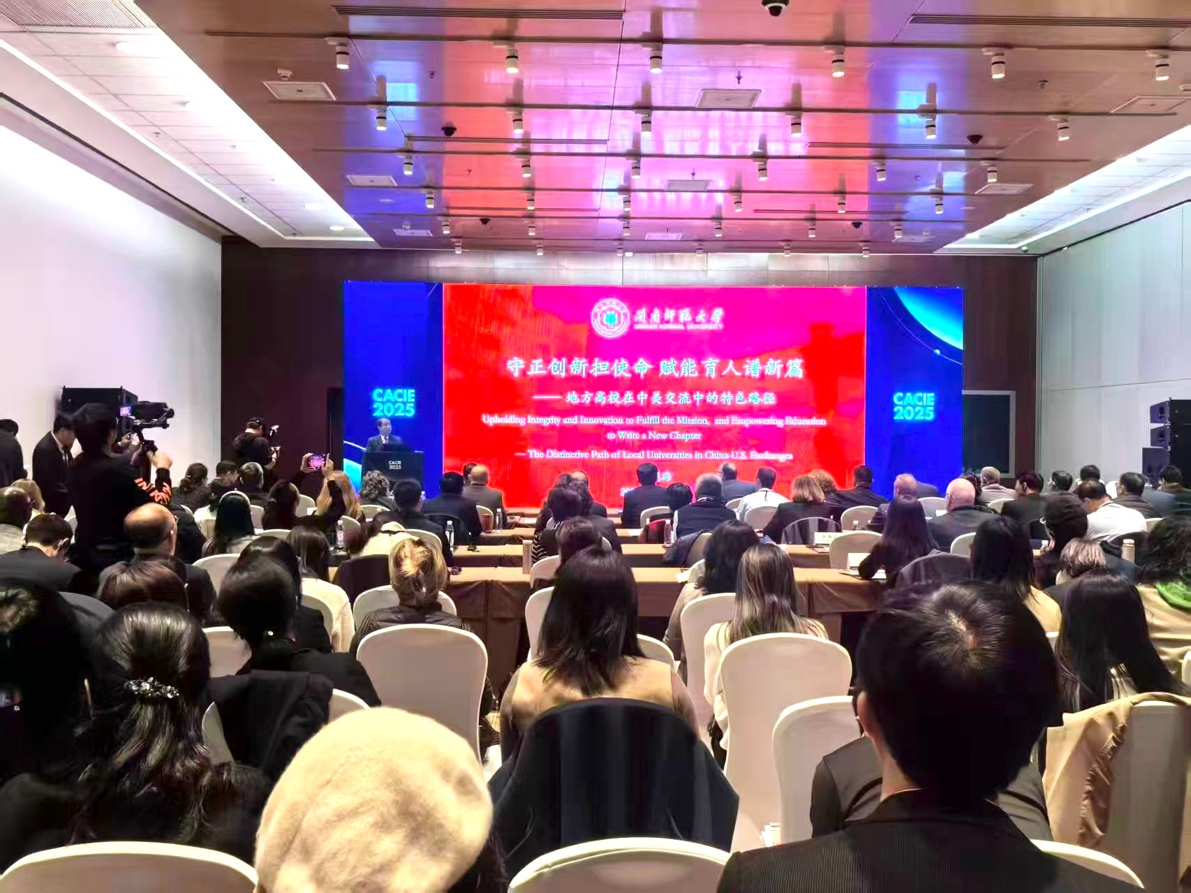 据悉,第六届中美省州大学校长论坛是第26届中国国际教育年会平行分论坛之一,以“建立开放互鉴的教育交流合作平台,促进中美师生往来和人员交流”为主题,着力深化中美省州高校间教育合作,旨在构建更加高效、包容的交流机制,为两国师生拓展发展机遇。中国教育国际交流协会会长刘利民、教育部国际合作与交流司副司长赵磊、美国州立大学与学院协会主席查尔斯·韦尔奇等出席论坛并致辞,200余名中外政府和高校代表参加论坛。