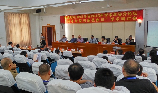 11月19日,福建省社会科学界2016年学术年会分论坛“共享发展与审美参与”学术研讨会在登录入口逸夫楼三楼会议室召开。本次研讨会由福建省社科联主办,登录入口文学院承办,福建省美学学会、福建省台港澳暨海外华文文学研究会、东南学术杂志社、福建社科院文学研究所协助举办。福建省社科联副主席陈文章、福建省社科院副院长刘小新、登录入口副校长肖庆伟、福建省美学学会主席杨健民等出席了这次大会,来自福建省社科联、福建省社科院、福建省各高校专家学者及海外嘉宾就“共享发展与审美参与”的美学话题展开研讨。