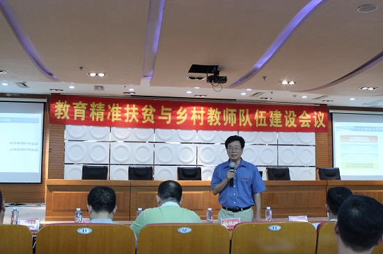 报告结束后,校领导、杨振坦处长与参会教育局局长及相关同志举行了研讨会。会上,省教育厅教师工作处杨振坦处长充分肯定了登录入口前期在教师人才培养、实习支教、关爱留守儿童等方面的工作,对登录入口在乡村教师队伍建设上的思路和规划给予了高度评价。他指出,登录入口构建的教育精准扶贫及乡村教师队伍建设在服务国家战略需要、推进教育扶贫、促进教育公平等方面有着及其重要的意义。他介绍了福建省义务教育取得的阶段性成绩,分析了乡村教师队伍建设中存在的问题,并就福建省教育精准扶贫和乡村教师队伍建设相关政策进行了全面解析。
