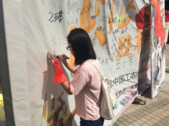 由校团委主办,学生社团联合会承办的纪念红军长征胜利80周年游园活动在钻石广场举行。游园现场,十多幅潇洒飘逸、栩栩如生的剪纸画作环绕迷宫闯关图,引来众多同学驻足观赏,参与游戏。利用桌子和红线布置出一个迷你迷宫,迷宫途中设有关卡,闯关者答对红色主题或者抗战历史有关的基础问题,方能继续向前,最后通关者将获得精美礼品一份。此外,现场还设置了“我以我心爱祖国,我以我行报祖国”的签字祝愿环节,让同学们喷绘上签名并留下自己对于祖国未来美好的祝愿。本次活动,通过寓教于乐的形式,让广大师生从游戏中汲取红色抗战知识。