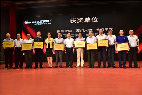 9月12日—13日,“建行杯”第二届福建省“互联网+”大学生创新创业大赛暨颁奖典礼在福州大学举行,福建省教育厅厅长黄红武、福建省建行行长刘丽华等出席颁奖典礼并颁奖。校党委副书记吴彬镪带领招生就业处、计算机学院等单位负责人及参赛团队出席比赛现场。