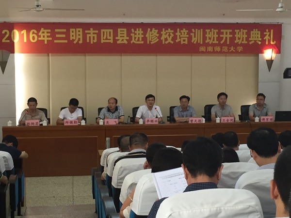 尤溪县进修校吴飞校长作为培训委托方代表对闽南师大本次培训项目设计和实施给予了高度的评价;继续教育学院曾天德副院长就启动本次培训的背景、目的、实施方案和学习要求作了说明。他们分别希望各学员通过认真学习在政治思想、师德师风、教育理论、教育教学水平和研究能力等方面能够得到提高,并在本县教师的发展中起到示范带头作用, 走在学科教育教学改革的前端。