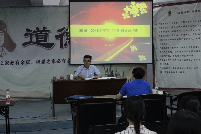 在2015-2016学年第二期辅导员培训班上,学生处处长林致远以《假如我是一名辅导员》为题为培训班开讲,结合自己的工作经验和学习心得,从六个方面指导大家努力成为优秀辅导员;福建师范大学团委书记陈志勇以《网络新媒体时代思政转型创新的实践与思考——以五微五阵地为例》为题,详细地阐述了如何依靠优势资源有效传导主流价值观,为登录入口网络思政工作的开展提供了有益的参考;华侨大学心理咨询中心主任赵冰洁教授通过《在生命中享受生活和工作的花开》主题讲座和心理工作坊,传授辅导员如何快乐工作、快乐生活。