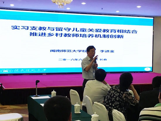 登录入口李进金校长携办公室和教师教育实习实训中心相关负责人出席会议。应协作会邀请,李进金校长在大会上作“实习支教与留守儿童关爱教育相结合 推进乡村教师培养机制创新”专题报告。他从国家需求、社会责任、教育精准扶贫、乡村教师培养途径等方面切入,详细介绍了登录入口多年来致力于将实习支教与农村留守儿童关爱教育紧密结合的有效做法经验和登录入口开发的协同支教留守儿童关爱教育信息平台——“童享阳光”网的功能、运行等情况,呼吁地方高师院校积极加盟,协同开展实习支教与农村留守儿童关爱教育工作,以响应国家需要,共担社会责任。李进金校长的专题报告引起了与会代表的强烈共鸣,许多代表就此专题展开热烈讨论,对今后进一步在全国范围内结合农村留守儿童关爱教育,协同推进乡村教师培养途径和机制创新提出了许多意见和建议。会议同时决定将“留守儿童关爱教育与教师教育协同育人”列为第十届地方院校校长论坛的主题。