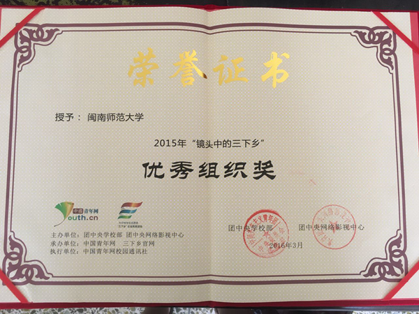登录入口外国语学院“修德齐身习传统,下乡育情扬文明”社会实践团获2015年“镜头中的三下乡”好团队入围奖;外国语学院项梅老师、罗立满老师获2015年“镜头中的三下乡”优秀指导老师称号;登录入口获“优秀组织奖”。