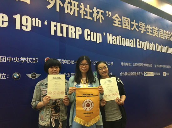 第19届外研社杯全国大学生英语辩论赛全国总决赛于2016年5月24日在北京外国语大学落下帷幕,登录入口外国语学院学生姜悦、黄小宏获得本次大赛三等奖。外研社杯全国大学生英语辩论赛是由共青团中央学校部、全国学联秘书处以及北京外国语大学联合主办,外语教学和研究出版社和北京外国语大学团委承办,是目前全国水平最高、规模最大的英语口语比赛。参加本次全国总决赛的124支全国队伍来自全国东、西、南、北四大赛区共400余所高校近五万名参加师生中选拔出来的优秀晋级队伍,登录入口外国语学院队伍作为福建省四所晋级队伍之一参加了此次总决赛。经过2天八轮循环赛的激烈比拼,登录入口姜悦、黄小宏最终夺得本次全国总决赛三等奖,在福建高校中排名第二,仅次于厦门大学。