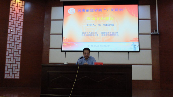 5月17日下午,民进福建省委“开明讲坛”在登录入口举行。民进中央副主席、省政协副主席、民进省委主委、省社科院院长张帆教授莅临登录入口作题为《漫谈文化建设》专题讲座。福建省委会专职副主委郑家建、民进省委组织处处长林龙金、民进省委社会服务处副调研员林华东,登录入口党委书记林晓峰、副书记吴彬镪、副校长肖庆伟,漳州市委统战部部务会成员曾黄河调研员、民进漳州市委会领导、登录入口统战部长欧阳红红,省市民进会员以及登录入口各民主党派代表聆听了讲座。讲座由副校长肖庆伟教授主持。