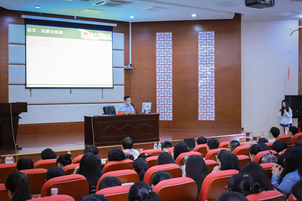讲座中,四位专家分别以“核能应用”、“核与辐射安全监督”、“核燃料循环辐射环境影响与管理”、“核辐射应急准备”为主题,层层递进地阐述了核能的基本知识、核能应用的具体体现、核安全的重要性、辐射安全监督的可行性、核燃料循环的有效管理、如何防范于未然做好核辐射应急准备。专家用浅显幽默的语言分析了“核能与核能技术应用”相关知识领域,现场安排了互动提问交流环节,气氛热烈,师生受益匪浅。
