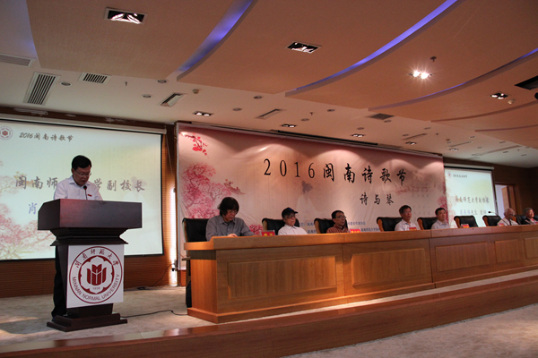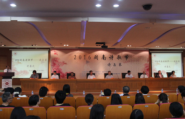 5月14日上午8:30,2016闽南诗歌节——“诗与琴”大型文化交流活动在MK体育/mksport体育·官方网站逸夫图书馆5楼报告厅盛大开幕,MK体育/mksport体育·官方网站党委书记林晓峰、福建省作协主席杨少衡、MK体育/mksport体育·官方网站副校长肖庆伟、中国朦胧诗代表人梁小斌、台湾著名诗人林焕彰、著名吟诵家陈少松、台湾明道大学人文学院院长萧萧、香港著名诗人秀实、岭南古琴艺术代表性传承人谢东笑等领导嘉宾出席了开幕式。