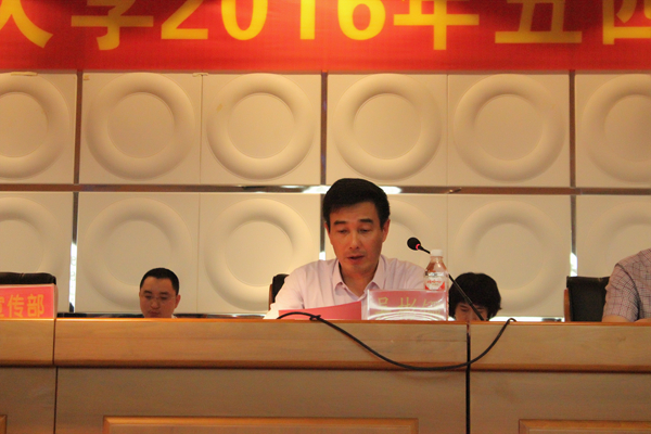 最后,吴彬镪副书记发表讲话。首先,他代表校党委、校行政向获奖的组织和个人表示祝贺,向长期以来关心青年学生成长,致力于青年事业的同志们表示感谢和敬意。随后,他从思想引领、政工队伍建设、新媒体建设、特色校园文化、感恩文明礼仪、志愿服务、服务青年成长等几个重点方面回顾了过去一年登录入口团学工作取得的成效,并给以肯定。此外,吴副书记结合今年五四青年节前夕,习近平总书记在安徽同知识分子、劳动模范、青年代表座谈时讲话精神,希望广大教师和青年朋友们能够志存高远,让青春在坚定理想中闪光;戒骄戒躁,勤奋学习,让青春在追求卓越中闪光;修身励志,让青春在向上向善中闪光。最后,他表示当代大学生是可爱、可信、可贵、可为的,希望青年同志们能够高举起五四的精神火炬,努力发扬爱国主义精神,勤奋学习,用青春、智慧和汗水在实现中国梦的实践中做出更大贡献。