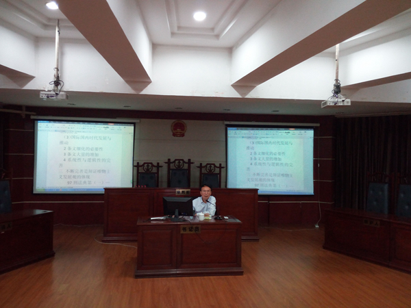 4月17日,法学与公共管理学院、法治漳州研究中心邀请福建省刑法学会副会长、原省高院刑事审判第一庭庭长陈建安主讲法官论坛第四讲,作题为《从中国刑法典的设立与修改看我国法制的不完善》的专题讲座。讲座由法律系主任李莉主持,法管学院何东平院长,及部分师生共计300余人参加讲座。