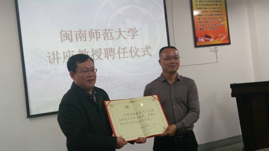 为加强师资队伍建设,促进“双师型”人才培养,2016年1月7日下午,商学院在笃行楼216室举办讲座教授聘任仪式,正式聘任中央党校税务分校(国家税务总局党校)、扬州税务干部进修学院兼职教授沈家骏、中央党校税务分校(国家税务总局党校)、扬州税务干部进修学院兼职教师林佳良为登录入口讲座教授。MK体育/mksport体育·官方网站副校长肖庆伟、MK体育/mksport体育·官方网站纪委书记黄来渊出席仪式,肖庆伟副校长为讲座教授颁发聘书。